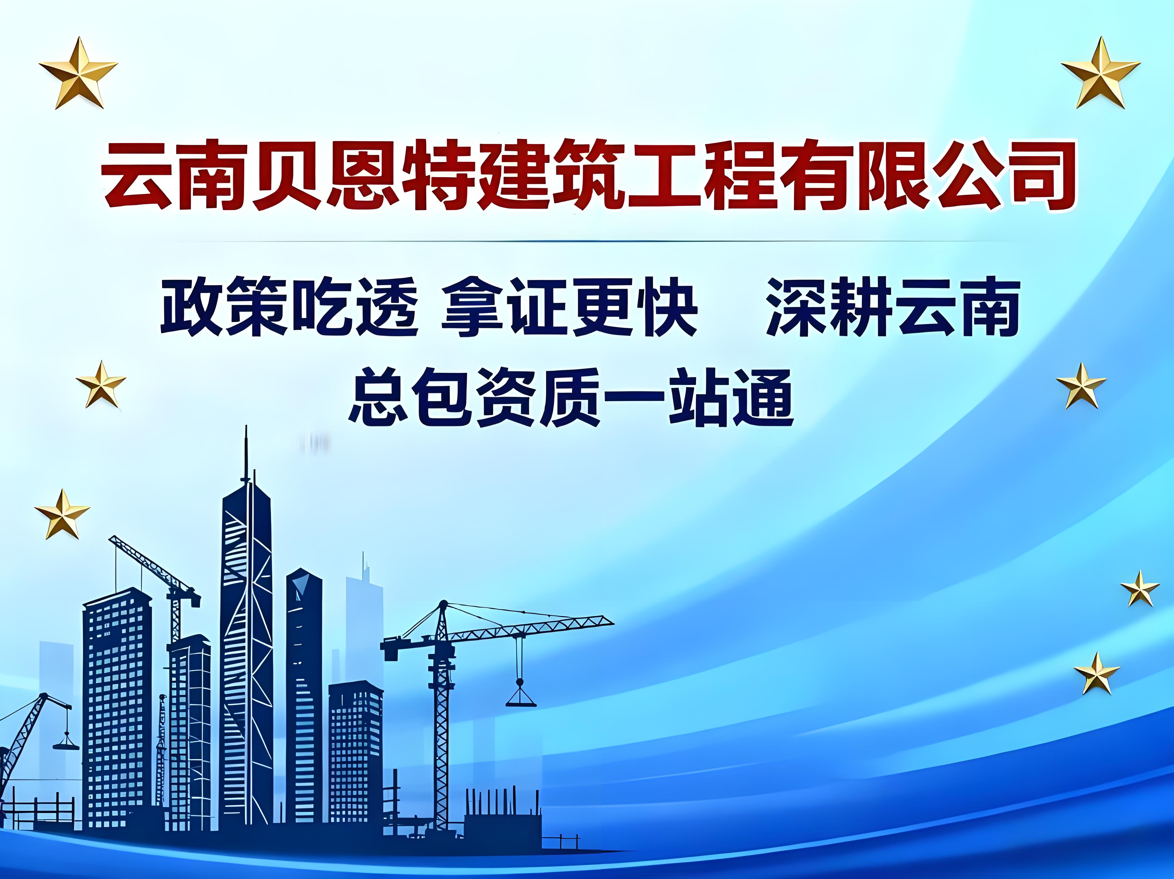 作为扎根云南本土的专业建筑资质代办服务商,聚焦施工总承包、专业承包、施工劳务三大核心资质序列,提供从新办、升级、延续、变更到备案的全流程专项服务,让企业精准匹配政策红利,高效获取合规经营“通行证”。